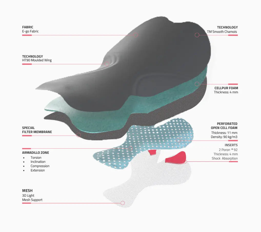 - Un pad étudié pour éviter toute gêne à l'entrejambe. Dense et confortable, les sorties longues ne seront plus un problème.